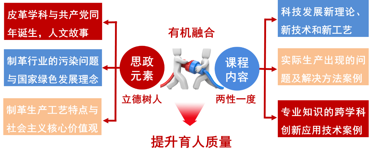 该门课程重点是帮助学生掌握制革准备-鞣制工段的工艺过程及原理、材料应用及操作要求等专业知识,难点是帮助学生形成工程思维,解决新技术面临的工程问题,突破行业发展困境。本课程可追溯到1921年建立的我国第一个制革学系,由中国现代皮革科教奠基人张铨教授等大师创建,具有深厚的历史底蕴。