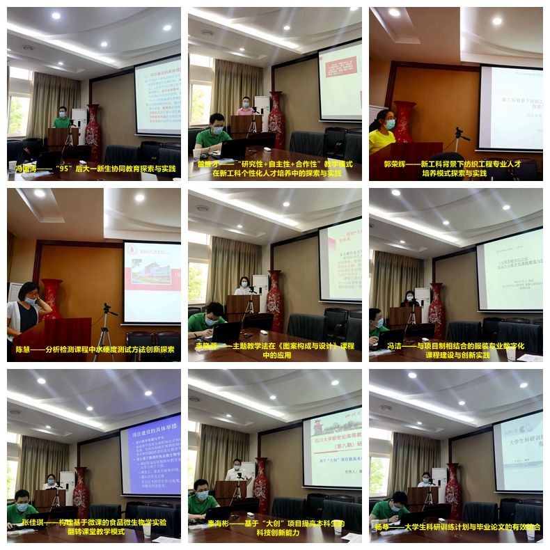 其它9个项目的负责人从研究思路、创新点及所取得的成果等方面,分别进行了精彩汇报与分享。项目涵盖了学生思政、课堂教学方法、实验课程授课方式和大学生创新创业及科研训练等多个方面的改革。项目评审组成员认真地对每个项目进行了点评,并通过认真讨论,形成了每个项目的结题初评意见。