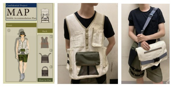 叶千慈同学因疫情原因只能在线完成答辩。她的毕业设计作品是在家里制作完成,先做样衣改进后完成成衣。其毕业设计主题为移动乌托邦M.A.P,利用服装作为变形的媒介,变幻出出行和居住所需的物件,如背包﹑帐篷和睡袋等,实现一衣多用。
