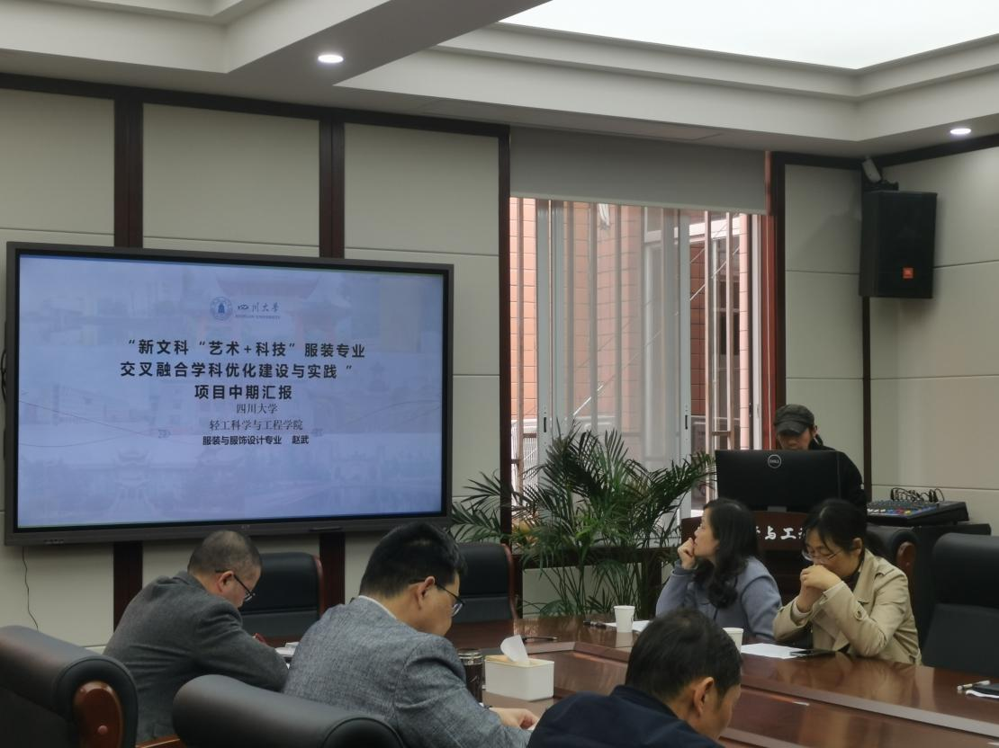 “‘艺术+’跨学科交叉融合创新人才培养的研究”项目负责人赵武副教授从研究目标和教学交叉培养目标改革成效等两大板块对项目进行了分享。目前项目已取得交叉融合体系建设、“服装与服饰设计”的专业课程深度融合和人才培养等诸多阶段性成果。