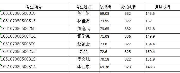 调剂学生名单: