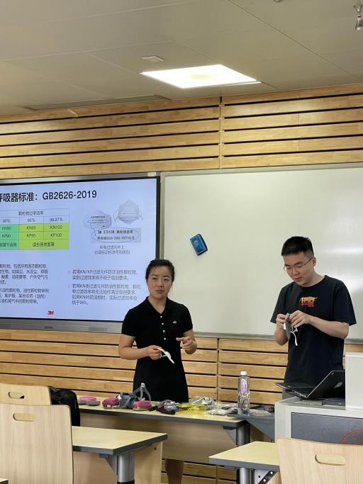 2023年5月30日上午8:00到11:45,在四川大学望江校区基础教学楼A座A503室, 3M中国有限公司西部技术中心的张霞工程师作为授课专家,为2019级本科生做了“个人防护和实验室安全”专题讲座。该讲座介绍了许多个人和实验室安全防护的方法和措施。同学们通过试用课堂上的个人防护用品,掌握了常用的安全防护品的使用方法,进一步增强了安全防护意识。