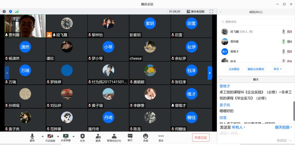 贾利蓉教授为同学们对卓越工程师培养计划进行了全面、详细的介绍,接着曾维才副系主任对培养过程中的相关情况进行了讲解,最后由段飞霞老师对本次卓工班选拔的程序及相关注意事项进行宣讲。会后,三位教师在线解答了同学们关于本次卓工班选拔的相关咨询。