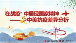 2017级本科生结合 “读懂抗疫大考的‘中国答卷’”的主题开展讨论与展示。同学们根据中美的“抗疫答卷”从国家制度差异、文化差异等方面进行分析中美两国的“抗疫”情况,也列举了多个实例对两国的“抗疫”进行对比,让同学们深刻体会到在抗疫中中国以人为本,把人民的生命放在第一位,不惜一切代价抢救每一个生命的中国力量与中国自信。