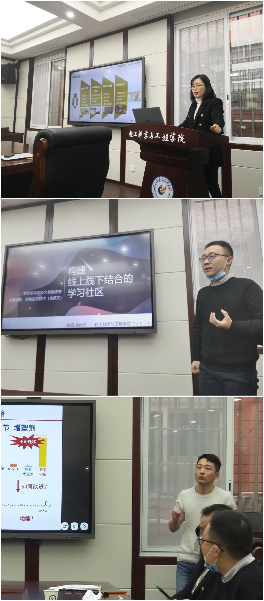 现场评审环节的比赛气氛热烈,由参赛团队主讲教师进行15分钟以内教学创新设计汇报,参赛教师们精心制作PPT,分享课程创新中的创新点,有课程思政巧妙地融入,有教学痛点问题的解决方案,有运用启发式讲授激发的学习热情,有学习社区的建设等,选手、评委和观摩老师互动频繁,比赛现场可谓是精彩纷呈。