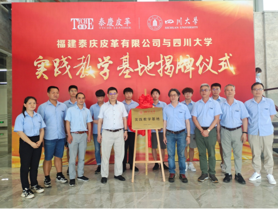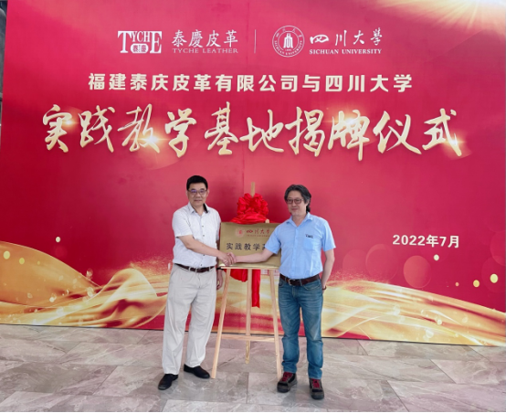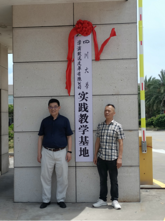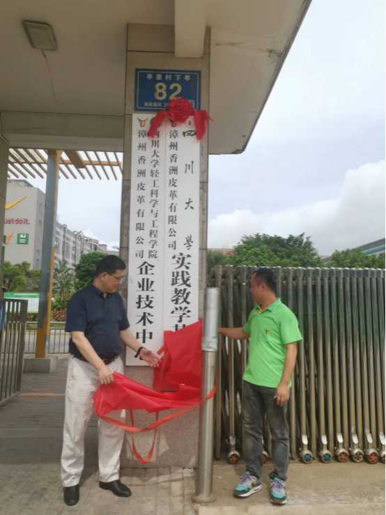 2022年7月18日至19日,四川大学轻化工程专业实践教学基地揭牌仪式在福建省漳浦县赤湖皮革工业园隆重举行,9428cn太阳集团古天乐院长彭必雨教授、生物质与皮革工程系副系主任程海明教授、张金伟博士和三家企业领导以及2019级“卓越工程师班”学生出席了仪式。在揭牌仪式上,彭必雨院长代表四川大学分别与福建泰庆皮革有限公司、漳洲香洲皮革有限公司和漳浦致远皮革有限公司共同签订了校级实践教学基地建设协议书,为企业专家颁发了“卓越工程师计划”企业导师聘书,并与三家企业领导共同为校级实践教学基地揭牌。