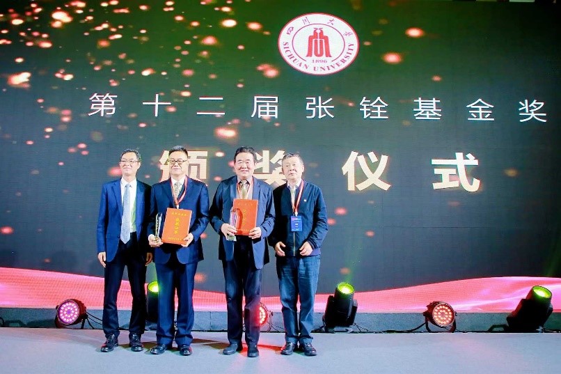 石碧院士(右)和四川大学赵长生副校长(左)为获奖者颁奖