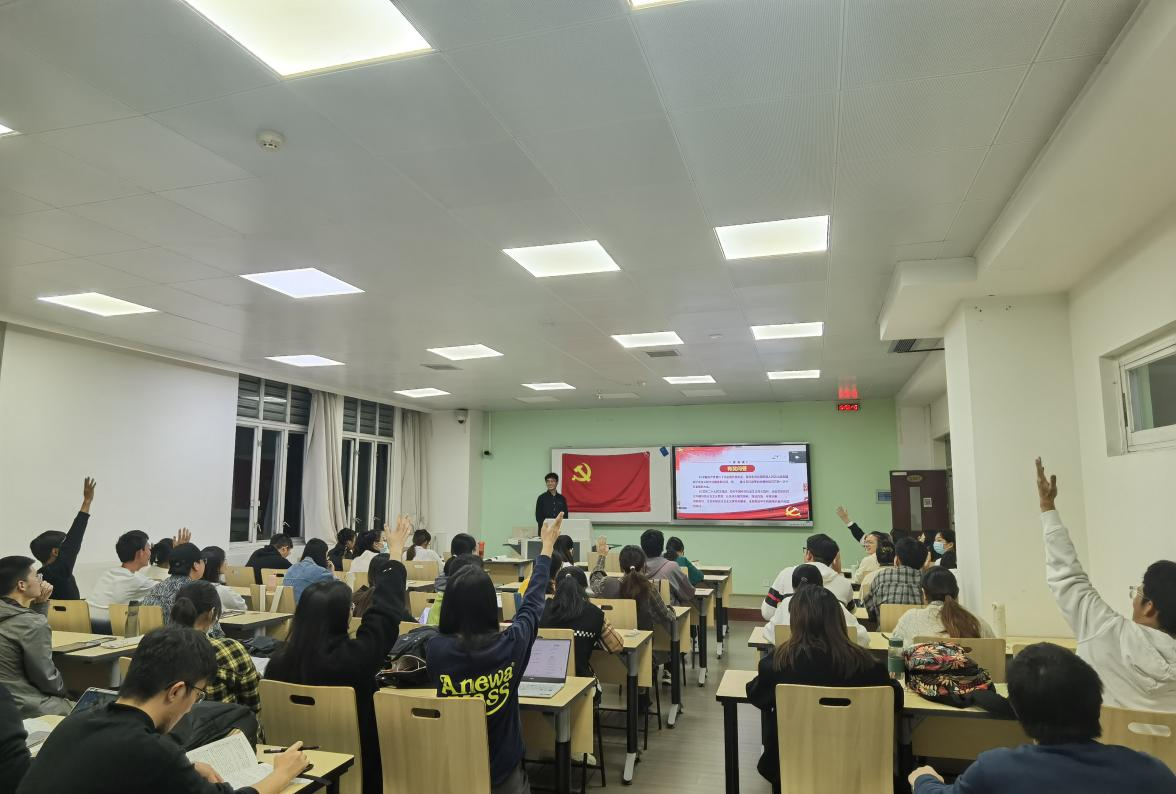 为全面深入学习宣传贯彻党的二十大精神,高举中国特色社会主义伟大旗帜,弘扬伟大建党精神2022103118:30,本科生第二党支部在望江校区基础教学楼A307以线上线下相结合开展“学思践悟二十大,共同谱写新篇章”主题党日活动。