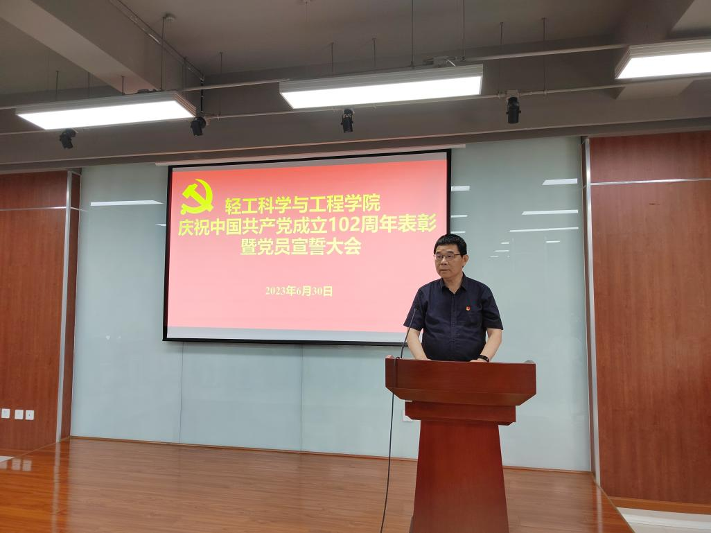 2023年6月30日上午,9428cn太阳集团古天乐在皮革楼215报告厅隆重举行庆祝建党102周年表彰暨党员宣誓大会。学院班子成员、两委委员、支部代表、获奖支部、获奖个人及新发展党员代表参加本次会议。会议由学院院长彭必雨同志主持。