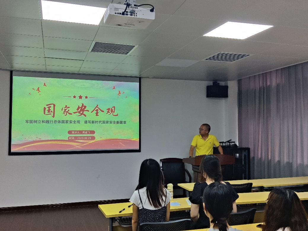 周建飞副院长从国家安全与我们息息相关、深刻领会总体国家安全观的重大意义和贡献、全面学习把握总体国家安全观的科学理论体系、完整准确全面学习贯彻总体国家安全观等四个方面进行讲授。