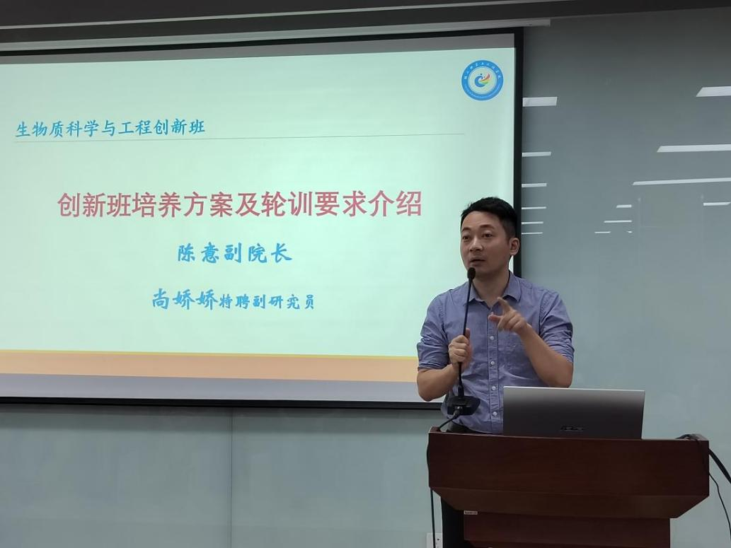 首先,学院党委李天富书记致辞。李书记代表学院党政向经过选拔进入2022级创新班的40名同学表示热烈祝贺,并表示学院将一如既往在教学保障、条件保障与管理保障等方面大力支持创新班的建设与关心同学们的成长。同时,李书记希望创新班同学能沉下心来、努力钻研,在生物质科学与工程创新班平台上继续锻炼自己、不断提升自己,成为更好的自己。