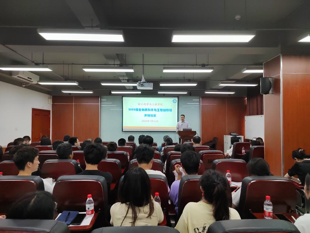 2023年7月11日上午,2022级生物质科学与工程创新班开班仪式在皮革楼215报告厅隆重举行。参加此次开班仪式的有学院党委李天富书记、冯国涛副书记、副院长陈意教授、生物质与皮革工程系系主任林炜教授、创新班平台负责人、课程负责人、班主任、导师及2022级创新班全体学生。开班仪式由冯国涛副书记主持。