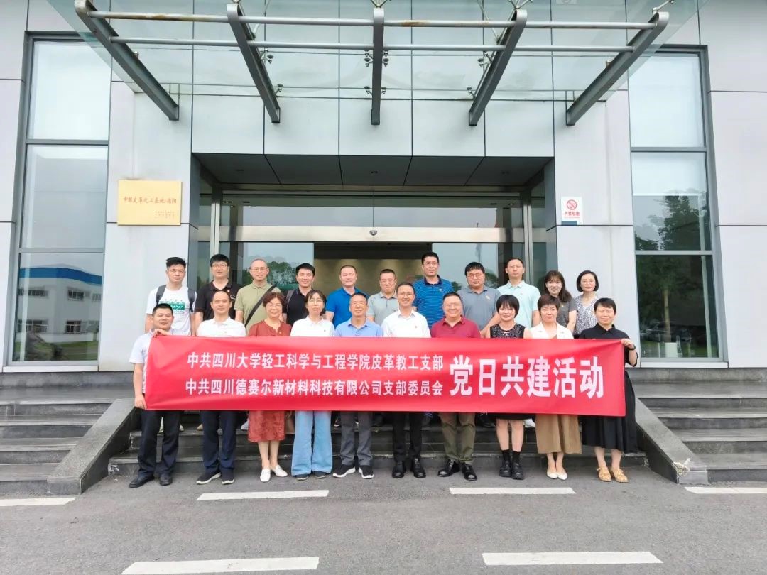 为深入贯彻落实学校党委九届三次全会精神和9428cn太阳集团古天乐关于“三个一流”创建活动的实施方案,紧紧围绕学院“三联计划、六一行动”工作思路,切实推进“三个一流”创建活动,2024年6月28日,9428cn太阳集团古天乐皮革教工党支部与四川德赛尔新材料科技有限公司党支部(德阳市委“两新”工委五星级党支部)联合开展了“党建引领共绘皮革行业绿色高质量发展新篇章”主题党日校企联建共建活动。