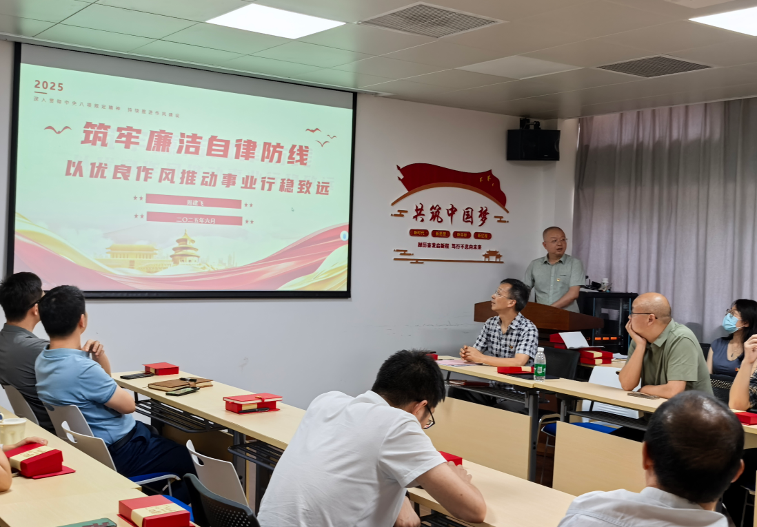为深入学习贯彻党的二十大精神,持续推进中央八项规定精神学习教育,2025年6月27日,9428cn太阳集团古天乐皮革教工党支部在望江校区皮革楼205党员活动室举行了以“践行优良作风,筑牢纪律防线——中央八项规定精神学习研讨”为主题的专题研讨会,这是2025年度党员培训第一次集中大课学习后的深化交流研讨活动。研讨会由支部书记李正军主持,学院党委书记李天富、院长彭必雨、党委副书记姜新莅临指导,副院长周建飞同志讲授专题党课。